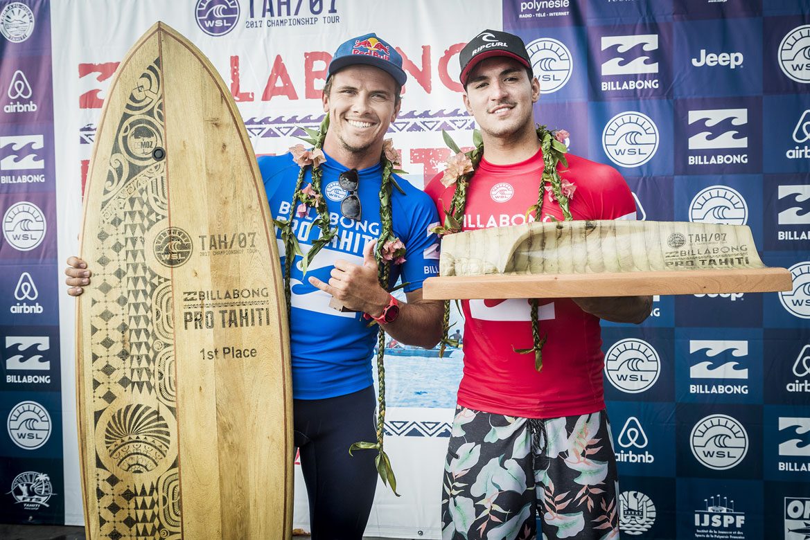 E’ stata una edizione breve e intensa quella del Billabong Pro Tahiti appena conclusa con la vittoria di Julian Wilson su Medina, iniziata subito al primo giorno di waiting period e terminata dopo tre giorni intensi. E’ la prima vittoria dell’anno per Wilson, la terza in carriera, che lo proietta al quinto posto nel ranking, mentre Wilkinson, uscito al quinto round, cede la lycra gialla a Jordy Smith grazie al posto in semifinale, e John John Florence rimane stabile al secondo posto. Con questo risultato, e quattro tappe ancora da disputare, Wilson può cominciare a pensare seriamente alla corsa al titolo mondiale.