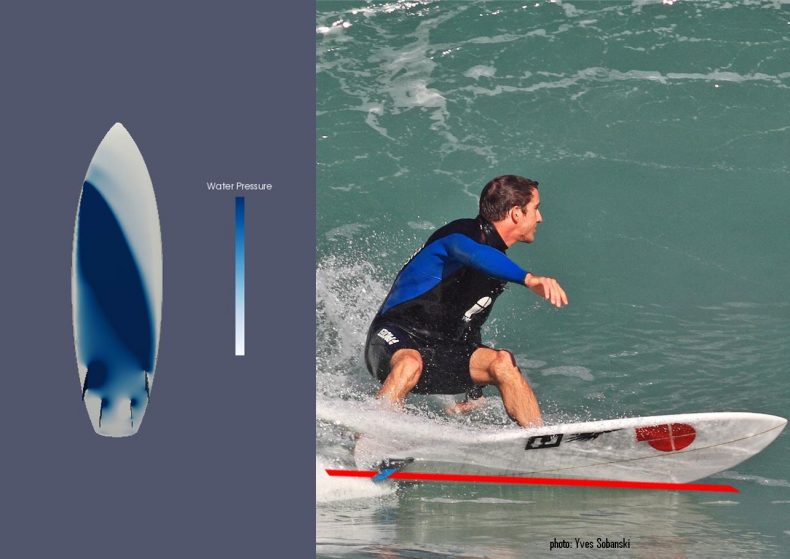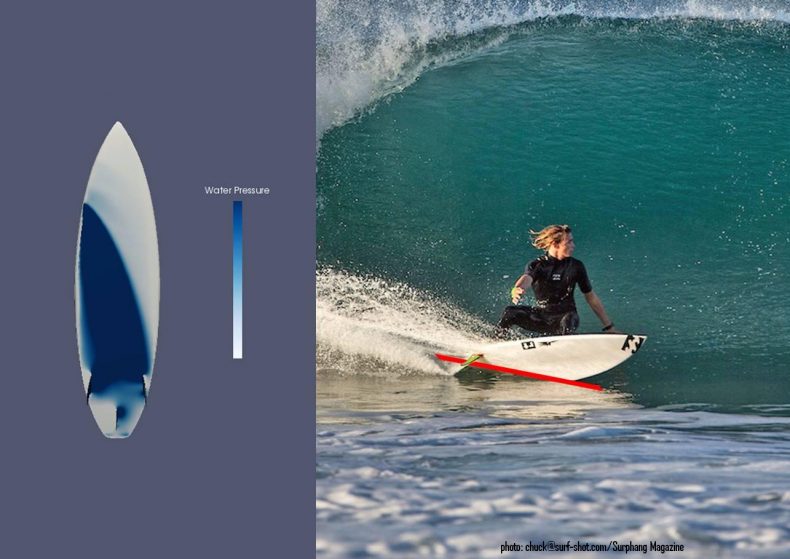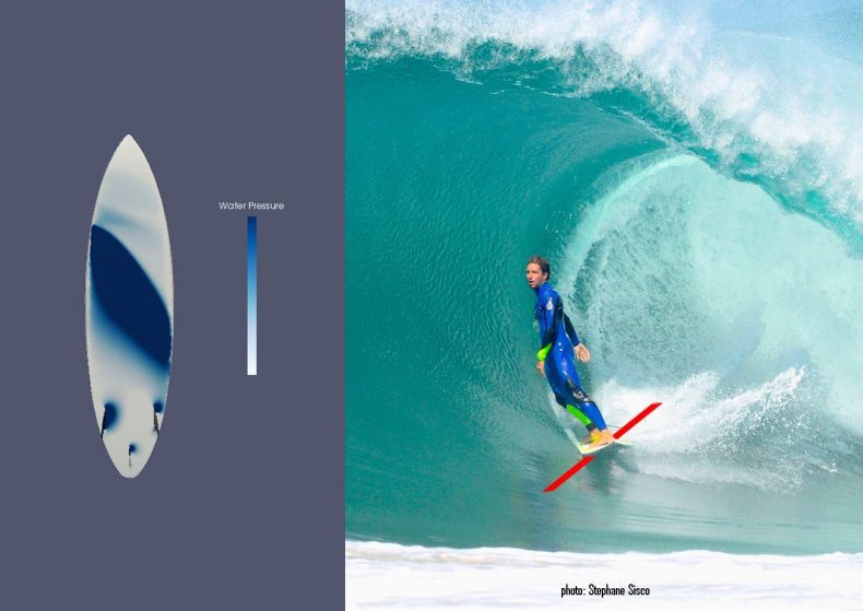 Il team di lavoro ha utilizzato tecnologie CFD allo stato dell’arte per mettere sotto esame innumerevoli shape, rails, configurazioni delle pinne, angoli di assetto, condizioni delle onde e manovre di surfer. Alla fine del 2017, dopo una fase di sperimentazione con il feedback degli atleti, Alberto e Marco hanno generato una singola equazione in grado di stimare il reale potenziale delle shortboards, per le quali l’area planante è molto più significativa del volume totale.