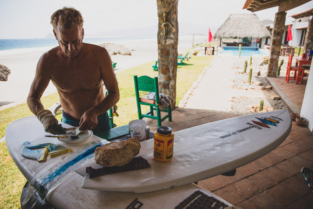Sappiamo che Tom ha lavorato molto sulle tavole, sul design delle pinne, passando da un nuovo modello di twin fin della Channel Islands alla sua tavola da skimboard usando i lunghi point messicani come laboratorio per i test. Ha anche suonato molta musica, gran parte della quale appare nel film che documenta il suo esilio.