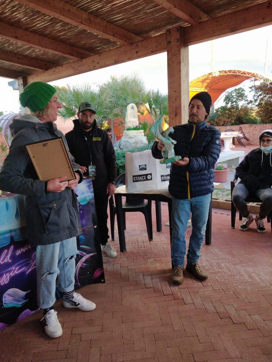 Dopo una finale agguerrita, Thomas si è aggiudicato il podio. Lo hanno contraddistinto le sue surfate solide e stilose, aggiudicandosi cosi, oltre che uno dei trofei creati da Angelo Russo e Mauro Corda, anche una delle due superbe sculture di Vincenzo Ganadu, messe in palio, una come best trick femminile e una come best trick maschile.