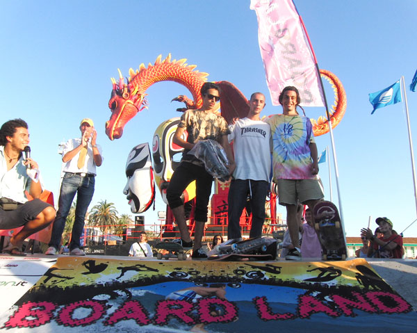 Tra i molti che si sono presentati alle qualifiche del sabato, 15 sono stati selezionati dalla giuria per le semifinali di domenica ed infine i migliori 8 hanno disputato la finalissima per dividersi il montepremi ed il materiale offerto dagli sponsors. Questo era il primo contest di alto livello in Versilia e l’entusiasmo dei partecipanti era altissimo, così come la partecipazione del pubblico sempre tenuto caldo dallo speakeraggio di Maradona from Ancona. Alla fine a trionfare è stato Federico “Ghigo” Borchi che è stato decisamente in forma per tutto il weekend ed in finale ha dato il meglio devastando il bump to bump chiudendo in una sola run flip, bs flip, 360flip e fs flip, un paio di questi trick non li aveva mai provati in practice! Sotto di lui sul podio i viareggini Ilias Serroukh che si sparava dei kgrind lungo tutto il rail pari e discesa e Gilberto Cannarozzi che passava dai bluntslide to fakie sulla flatbar a tricks particolari come il gap to wallride.
