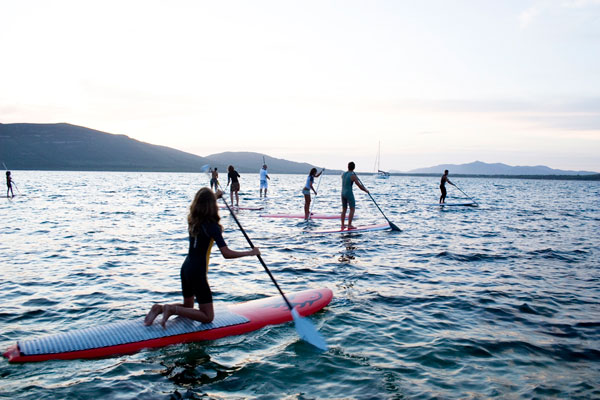 Alla fine è arrivato anche in Italia. Tutti ne parlano e ne decantano i pregi e dal Lago di Garda alla laguna di Venezia, passando da Forte dei Marmi a Santa Marinella, senza escludere il sud dell’Italia e le isole, è un volteggiare di surfisti in piedi su grandi tavole, spinti soltanto da un remo. I vantaggi rispetto al surf tradizionale, al windsurf e al kitesurf, non sono pochi. Non c’è bisogno né del vento né delle onde per fare un’escursione in mare, basta la voglia di pagaiare e allenarsi. Sì, perché prima di tutto il Sup è un ottimo mezzo per tenersi in forma, tanto che anche il bello del cinema hollywoodiano George Clooney lo usa durante i frequenti soggiorni nella sua villa al Lago di Como. Per non parlare di Jennifer Aniston, Matthew McConaughey, Pierce Brosnan, Matt Damon e Cindy Crawford, solo per citarne alcuni, che lo utilizzano per le uscite a Malibu o a Miami. Adesso il Sup arriva ad Alghero grazie al Surf Animals Club, che in collaborazione con il negozio di surf Sexboard, Sunset Immobiliare e AndräHaus e con il patrocinio del Comune di Alghero, di Surfing Italia e dell’Aics, organizza ben quattro eventi.