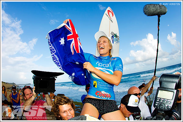 Stephanie Gilmore, 22 anni, ha conquistato oggi il suo quarto titolo mondiale consecutivo scrivendo un’altra pagina di storia al Rip Curl Women’s Pro Search a Puerto Rico.
