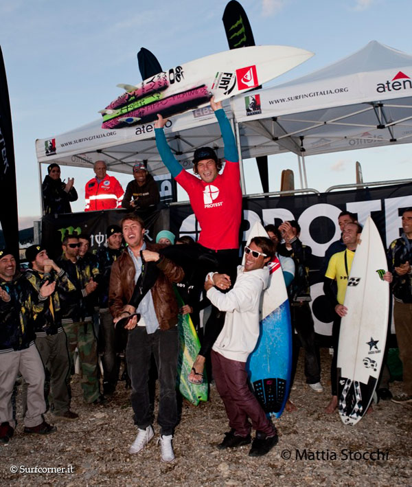 Finale del campionato italiano 2010 di Surfing Italia, Protest Banzai Pro. Congratulazioni D’Amico e Vitale campioni italiani. Foto Mattia Stocchi
