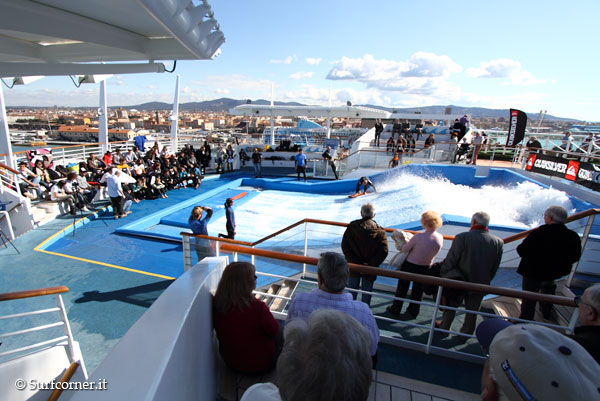 Le foto del King of Slippy, presentato da Quiksilver e Royal Caribbean sulla Independence of the Seas. Nelle foto: Roberto D’amico, Alessandro Demartini, Valentina Vitale, Simone Simi, Yari Cava, Francesco Farina, Filippo Eschiti
