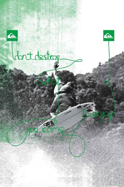 Ispirandosi allo slogan «Don’t Destroy What You Came To Enjoy», Quiksilver Group si impegna attivamente per la protezione ambientale attraverso una serie di attività che vanno dall’eco-design e la gestione ambientale, fino agli eventi e alle partnership con varie associazioni.