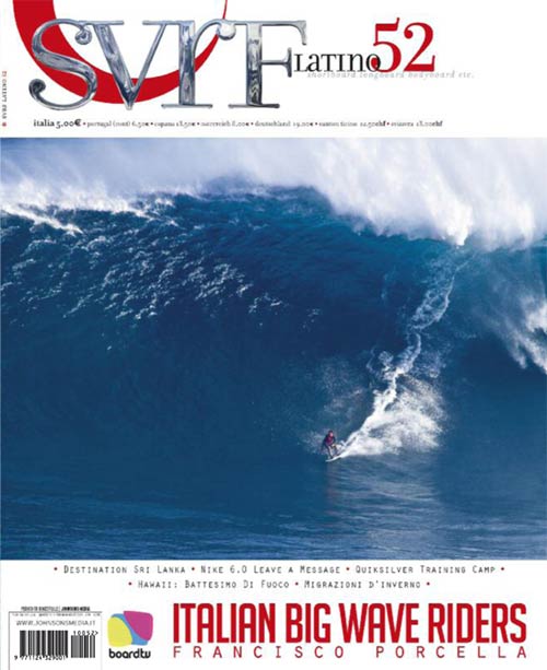 Quando un surfista italiano surfa regolarmente onde di 15 metri, fa notizia. Quando entra in nomination al Billabong XXL accanto a nomi come Shane Dorian, fa la storia. Per questo la copertina di questo mese è stra-meritatamente dedicata a Francisco Porcella, che si racconta in un ampio speciale sulle pagine di questo numero di Surf Latino.