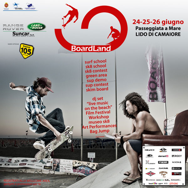 Dopo il successo dell’edizione zero” di Boardland, il primo grande evento di surf e skate mai realizzato in Italia, che vede la partecipazione delle più importanti aziende mondiali del settore, il 2011 segna quella che rimarrà nella storia dei boardsports come la Prima Edizione Ufficiale della manifestazione più attesa da surfers e skaters in programma Venerdì 24, Sabato 25 e Domenica 26 giugno a Lido di Camaiore, in Versilia.