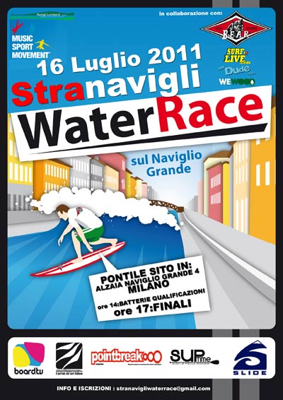Fondazione Navigli Lombardi e Music Sport Movement in partnership con Bear Surfboards annunciano a sorpresa la seconda edizione di Stranavigli Water Race. STRANAVIGLI WATER RACE 2011