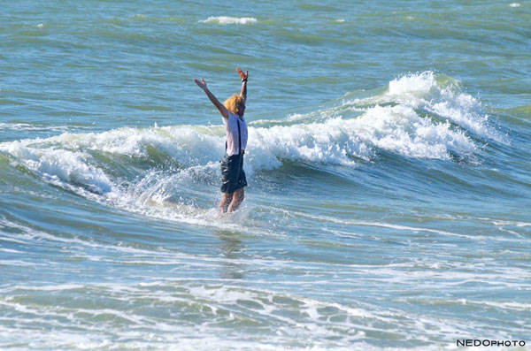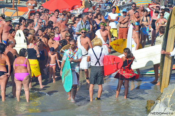 Questa edizione estiva ha rappresentato anche la rivincita su Nettuno dato che l’edizione invernale, la quinta di Surfando a Carnevale, non ha avuto molta fortuna ed è stata realizzata con un mare “effetto lago”. Rivincita sulla “patana” (mare piatto in vernacolo viareggino), quindi, con onde al di sopra del mezzo metro per due ore di free surf di fronte agli scogli della nostra città.