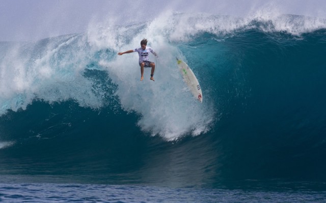 Il primo a entrare in acqua sulle onde terrificanti di Teahupoo è stato Jeremy Flores che ha dimostrato di essere uno dei surfisti più in forma, battendo prima il local Heairii Williams e poi Cory Lopez al terzo round.