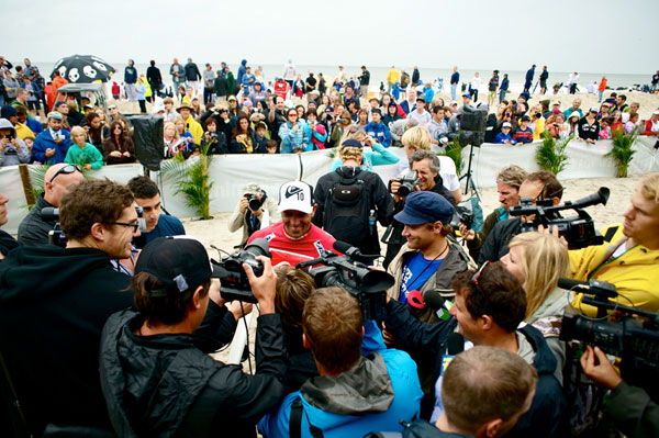 L’uragano Katia, nel frattempo declassato a categoria 2, ha dato il via al Quiksilver Pro New York ieri a Long Beach inviando le prime onde di un metro sulle coste di Long Island e consentendo il completamento del primo round.