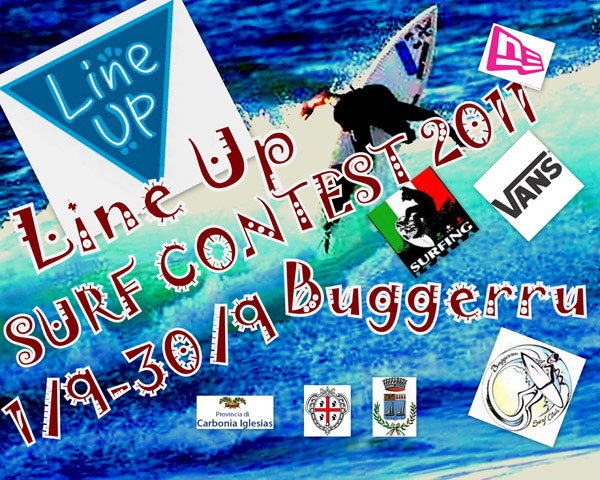 Nelle stupende onde del sud ovest della Sardegna, nella mitica spiaggia di BUGGERRU a partire dal 12/9 fino al 31/9 si terrà la prima tappa del Capionato Sardo 2011, LINE-UP SURF COTEST 2011.