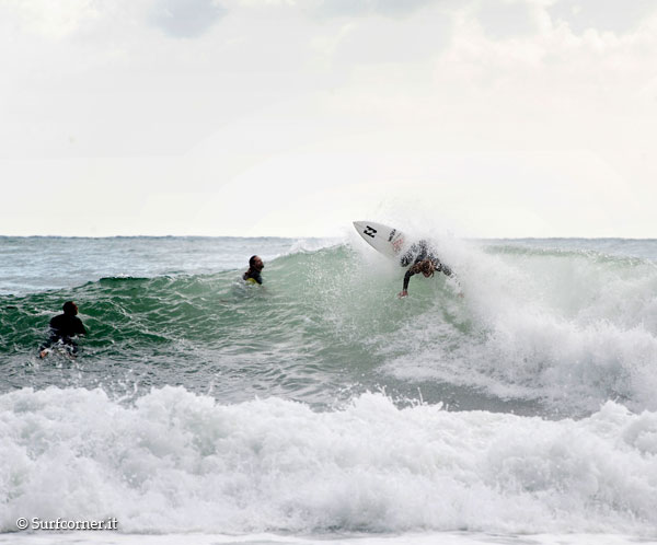 Il viaggio in Italia di Occy inizia lunedì scorso. Atterrando a Fiumicino, il Campione del Mondo ASP del ’99 scorge dall’aereo la presenza di onde. Appena il tempo di ritirare i bagagli e già chiede all’organizzazione di andare a surfarle. In meno di un’ora è sulla line-up di Banzai dove, in mezzo a un tifo quasi da stadio, offre un saggio di quello stile che gli è valso il nickname “The Raging Bull”.