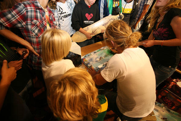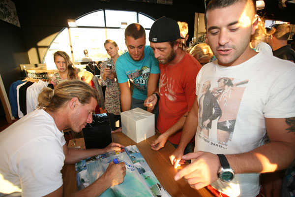 Dopo qualche ora concessa al jet-lag e ad una visita ai Musei Vaticani assieme alla moglie Mae, Occy taglia finalmente il nastro del nuovo Billabong Store di Ostia di fronte a un folto gruppo di fans in attesa già da qualche ora. La firma degli autografi e le foto con gli ammiratori va avanti per oltre due ore, mentre nella terrazza esterna si alternano i 3 dj-set della serata, Le Fleurs Du Mal da Roma, Simone Sassoli da Firenze ed i Supernova da Milano.