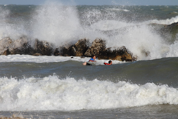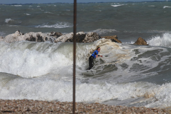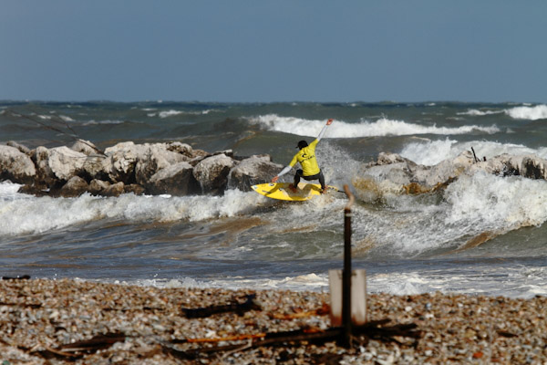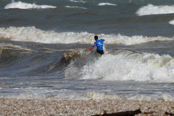 Ad inizio mattinata le condizioni del mare erano veramente pessime, a causa del forte vento on shore proveniente da nordest ma gli atleti si sono affrontati con grande determinazione mostrando il loro stile malgrado la scarsa qualità dell’onda.