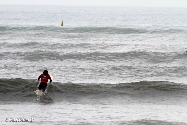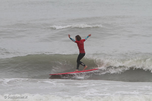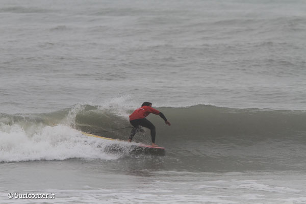 La seconda tappa del campionato italiano longboard si è svolta ieri durante una mareggiatina di scirocco con onde del mezzo metro al metro al bagno 95 di Riccione.