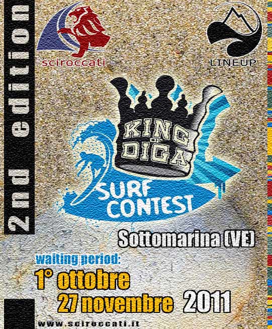 Per il secondo anno consecutivo il Veneto ospita il King of Diga SURF CONTEST nella location di Sottomarina (VE). La voglia di crescere, di alzare il livello, unita alla fame di onde amplificata da stagioni sempre meno prolifiche da questo punto di vista.. hanno fatto sì che anche quest’anno gli iscritti nelle diverse categorie (le iscrizioni sono state chiuse il 30/09) superassero abbondantemente le 50 unità!