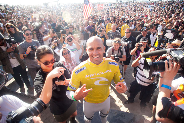 Dopo il clamoroso errore di calcolo dell’ASP, che mercoledì aveva incoronato Slater campione del mondo per l’11esima volta e poi lo aveva privato del trofeo, Kelly ha risolto oggi la formalità vincendo l’ultima heat che lo separava dall’ufficialità del premio, dopo la ripresa del Rip Curl Pro San Francisco rimasto in stand by da mercoledì a oggi per calo di swell.