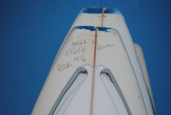 Andrea Di Pietro ha richiesto una nuova shortboard per i suoi viaggi oceanici e i suoi shaper di fiducia non potevano deluderlo. Ecco in anticipo qualche scatto segreto delle fasi di costruzione del nuovo modello Ride targato TwinsBros.