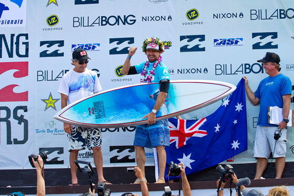 L’anno scorso Perrow era finito secondo dietro Jeremy Flores e quest’anno è tornato a prendersi la rivincita, affrontando le condizioni massicce dei primi due giorni senza concedere niente agli avversari nemmeno l’ultimo giorno con onde più piccole, dominando la finale contro Parkinson a colpi di Backdoor. Perrow solidifica così la sua presenza nel World Tour 2012 e conquista la sua prima vittoria nel Tour ASP.