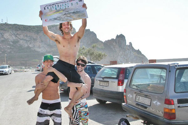 Alessandro portato in trionfo dagli amici al Lightning Bolt in Sardegna
