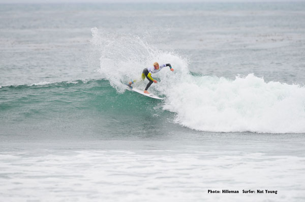 Heat 3: Nat Young (USA) 15.94, Glenn Hall (IRL) 12.26, Travis Logie (ZAF) 12.07, Marc Lacomare (FRA) 7.53