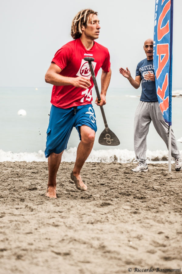 Settanta Atleti (56 nella prima edizione) domenica 20 Maggio hanno preso il via dalla spiaggia del bagno Arcobaleno di Fiumaretta su tre linee di partenza 14′, 12′.6 e allround per affrontare un percorso tecnico e impegnativo di aggiramento di cinque boe di cui due sotto riva a poca distanza dal pubblico. Il percorso prevedeva due giri da 3Km ciascuno per i pro, un giro solo per donne e amatori.