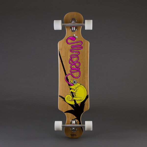 Disegnata per i longboarder più fantasiosi e ceh si vogliono divertire questa tavola combina shape twin, double kicktails, camber, concave e sistema Drop Thru per il montaggio dei truck… il tutto laminato con due strati da bamboo!