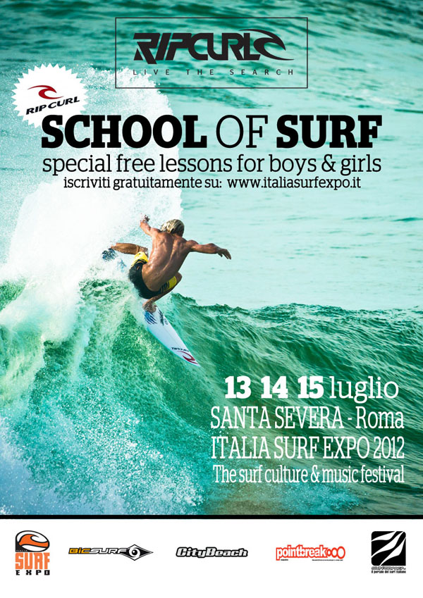 La Rip Curl, marchio leader nel mondo surf, in collaborazione con l’Italia Surf Expo 2012, l’evento più famoso del settore, per il secondo anno di seguito danno l’opportunità a tantissimi ragazzi di avvicinarsi allo sport con un’iniziativa unica e di alto richiamo.