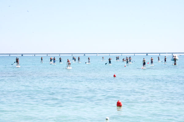 Maestrale alle spalle, decine di supper hanno sfidato il caldo di Scipione scivolando sulle acque, partendo dalla scuola di Vada e pagaiando verso sud per oltre 10 km lungo la costa, fino a Spot1.