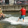 Il tuffo a bomba Hey Dude ha dato il via nel primo pomeriggio alla Bear Stranavigli Water Race con uno spettacolare salto di oltre otto metri, a seguire sono scesi in acqua i contendenti dei contest decisi a portarsi a casa i fantastici premi messi in palio da Bear Surfboard, Asahi, Smartbox, Hey Dude, Wewood e Surf to Live.