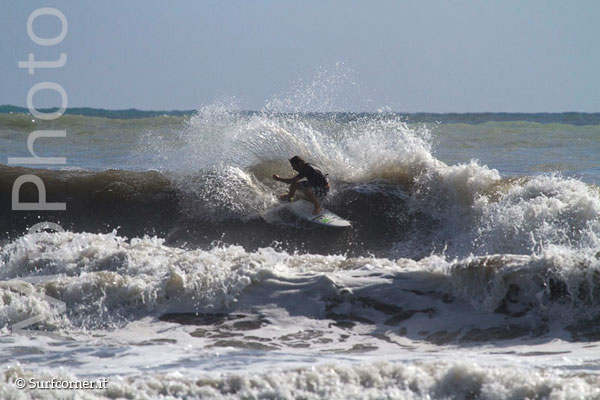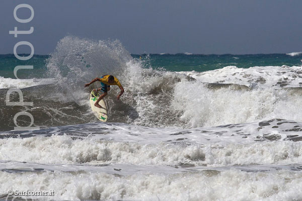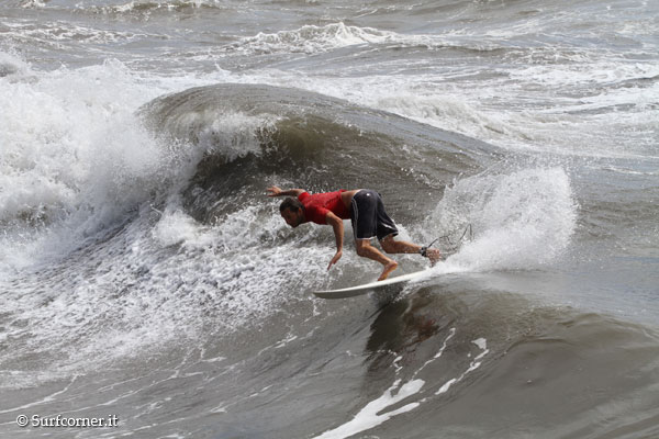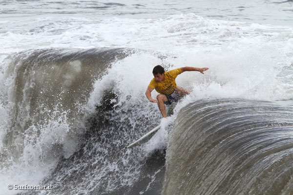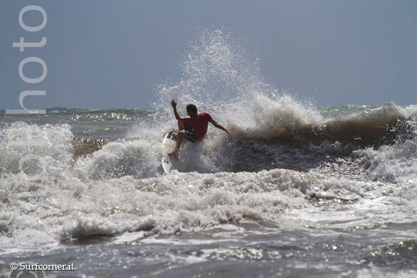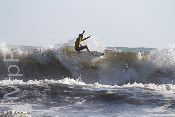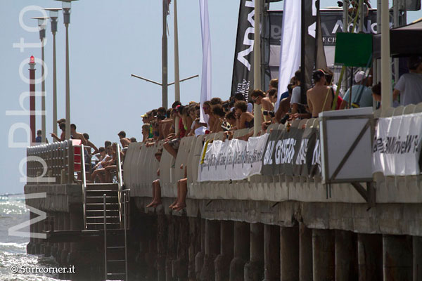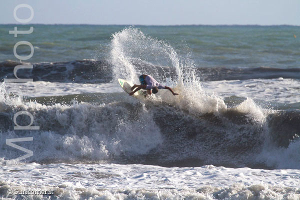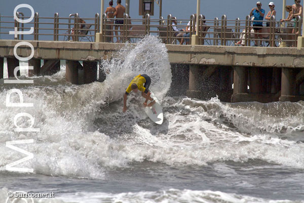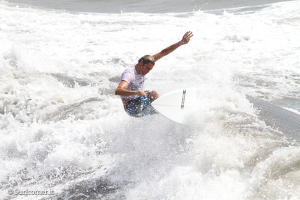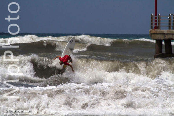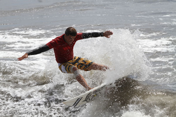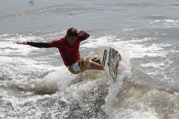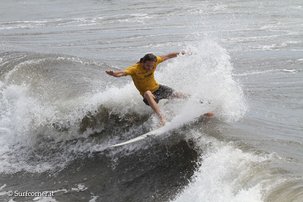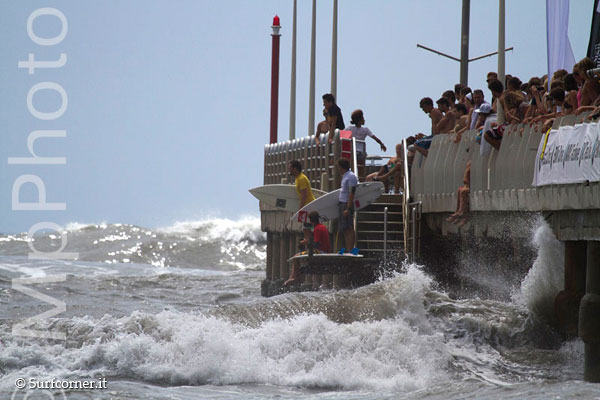 36 gli atleti iscritti, tra veterani del surf italiano (tra cui Jacopo Migliorini, Oliver di Fazio, Stefano Giuliani) e nuove leve come Massimiliano Spolverini e Davide Lopez che per tutta la giornata si sono alternati nelle heat all’ombra del pontile. Prematura uscita di Angelo Bonomelli al primo round, aiutato anche da un’interferenza, che ha lasciato avanzare Giovanni Palattella, autore di un’ottima prestazione e arrivato fino alle fasi finali del contest. Grandi assenti Roberto D’Amico, Alessandro Piu e Alessandro Demartini, impegnati nel pro junior europeo.