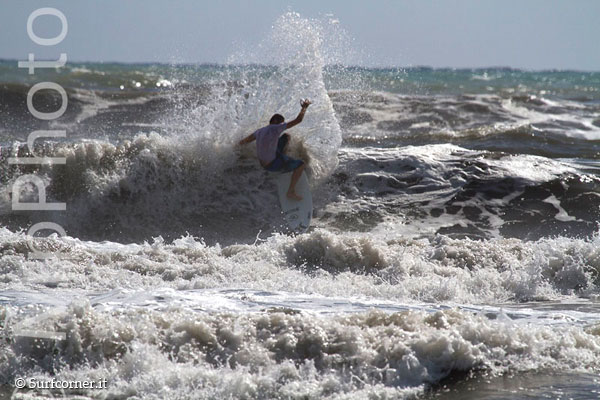Mareggiata con vento attivo da libeccio e onde intorno al metro e mezzo sono stati gli ingredienti dell’Analog 3Quarti Surf Challenge disputato ieri al Pontile di Forte dei Marmi.