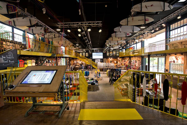 Più esploro il negozio e più mi rendo conto che è una cosa che non ho mai visto prima… una zona lounge con comode poltrone e pc ed internet gratuiti, una libreria e soprattutto un bar basco aperto tutto il giorno con i tipici prosciutti locali appesi al soffitto ad una carta di vini meravigliosa. Già mi prefiguro la scena: un piatto di prosciutto spagnolo, un buon bicchiere di Rioja, seduto sulla terrazza con i miei compagni dopo una sessione di surf. E in aggiunta, il venerdì ci sono anche concerti gratuiti!