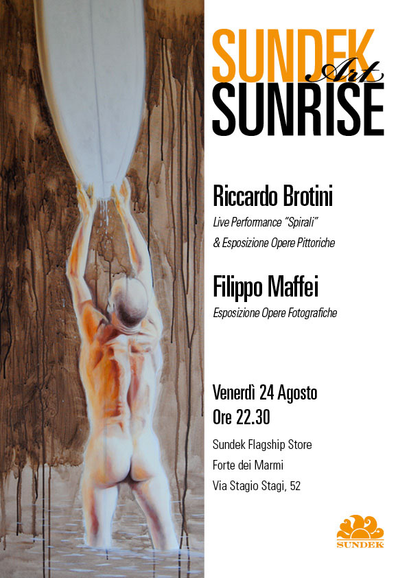 Venerdì 24 agosto il Sundek Flagship Store di Forte dei Marmi ospiterà una mostra d’arte con esposizione di foto di Filippo Maffei e live performance ed esposizione opere pittoriche di Riccardo Brotini.