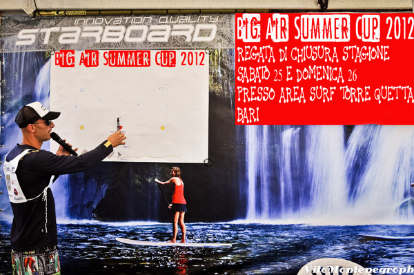 Unica tappa di chiusura estate 2012 del sud Italia è ormai un appuntamento fisso nel panorama degli sport da scivolamento in Italia. Grazie agli sponsor come: STARBOARD, PAT LOVE e NETBOOM ed all’impegno dell’A.S.D. Big Air tutti gli amatori e sportivi praticanti lo stand up paddle potranno mettersi alla prova, competere in allegria ed amicizia ma soprattutto dare il saluto ufficiale alla calda estate 2012.
