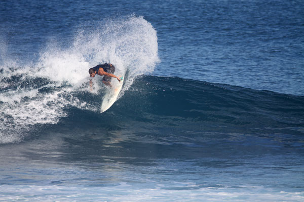 Ho 33 anni di cui gli ultimi 14 sono stati dedicati al surf. Tutta l’infanzia l’ho vissuta diviso tra l’ambiente urbano come skaters e la Montagna come sciatore professionista ma ad un certo punto ho sentito una grande attrazione per il mare e le onde, forse perché era un ambiente a me completamente sconosciuto. Mi ricordo un pomeriggio davanti ad un bar, ero seduto con due miei amici e decidemmo dal nulla di provare questo sport senza ben sapere a cosa andavamo in contro. Dopo un paio di uscite invernali dove l’unico obiettivo è stato quello di non affogare o morire di freddo, mi ritrovai a Biarritz con onde vere e tutti i giorni. E’ lì che giorno dopo giorno la passione l’amore o la dipendenza, come vogliamo chiamarla, è nata e cresciuta in me. Per tutto il mese che sono stato lì sognai quasi ogni notte queste montagne d’acqua gigantesche ed io nel mezzo, seduto sulla tavola, minuscolo ed impotente. Il desiderio di riuscire a scendere un’onda tagliandola era diventato quasi una malattia. Da quella prima esperienza di viaggio in cerca di onde, tutta la mia vita ha iniziato ad organizzarsi in funzione delle mareggiate, delle perturbazioni e dei viaggi in giro per il mondo dove sogni di trovare il tuo “luogo perfetto”