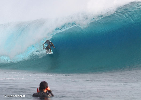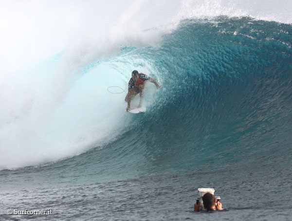 Gli altri highlights della giornata sono il perfect 10 di Jeremy Flores con un tubone in backside non grabbato, che solidifica la reputazione già molto solida di Jeremy a Teahupoo, e il secondo perfect 10 della giornata (nel video qui sopra) , ottenuto da Gabriel Medina, che sta partecipando alla sua prima edizione del Billabong Pro Tahiti.