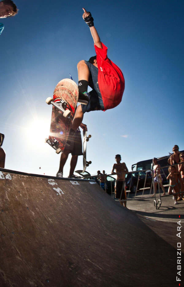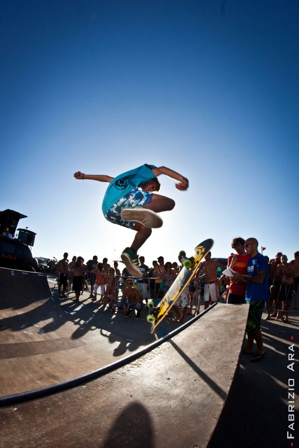 Per quanto riguarda lo skate la discesa al mare di downhill da parte dei ragazzi della Urban Gang di Sassari è stata impegnativa ed emozionante, così come la competizione sulla rampa: entrambe hanno visto esibirsi ragazzi di ogni età, ma il numeroso pubblico è rimasto impressionato soprattutto dai giovanissimi e dalla loro passione e dedizione. Nella categoria Downhill primo classificato Chuck Sanna da Arbus, seguito da Nino Meson e Valerio Lai del team Outlaw di Sassari; mentre per il contest su rampa il podio se l’è aggiudicato Francesco Santona, di soli 11 anni, seguito da Nicola Gaias, di 15 anni e Antonio Lai.