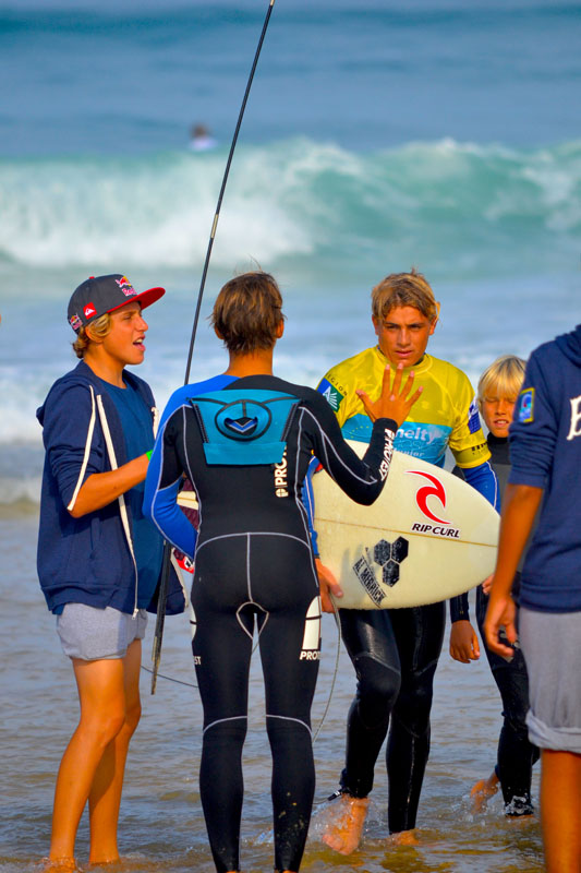 Il capitano della Nazionale, Leo Fioravanti, continua imperturbato la sua corsa dimostrando un ottimo surf e una grandissima maturità in gara… Nonchè un grande entusiasmo nel tifare i compagni e dandogli consigli tattici utilissimi.