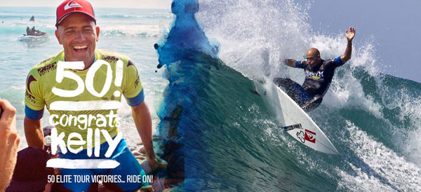 Bob McKnight, CEO di Quiksilver, ha commentato: “La determinazione di Kelly e la sua inarrestabile carriera nel surf professionistico sono qualcosa di straordinario. Dopo averlo visto per oltre vent’anni conquistare qualsiasi tipo di trofeo, siamo fortemente orgogliosi di festeggiare con lui la stupefacente cinquantesima vittoria. Congratulazioni a Kelly da parte di tutta la famiglia Quiksilver!”