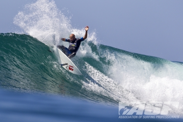 Heat 2: Kelly Slater (USA) 15.94 def. Jeremy Flores (FRA) 15.44