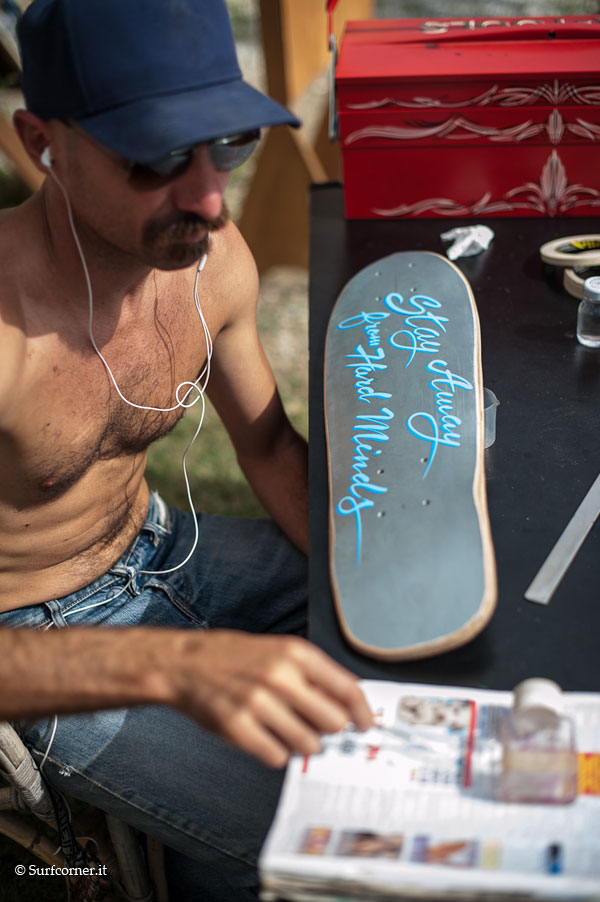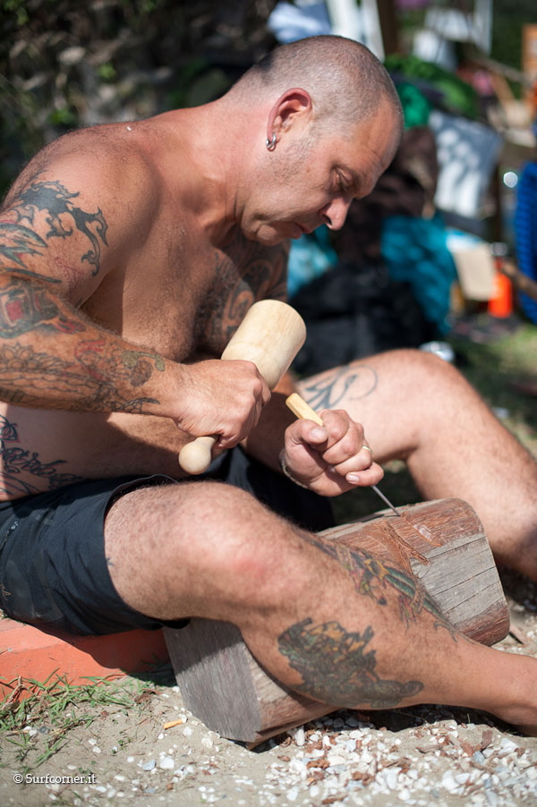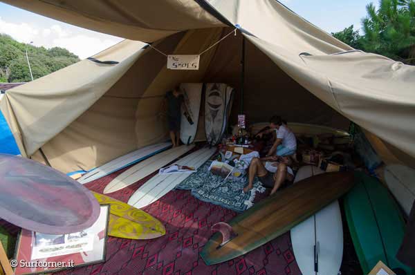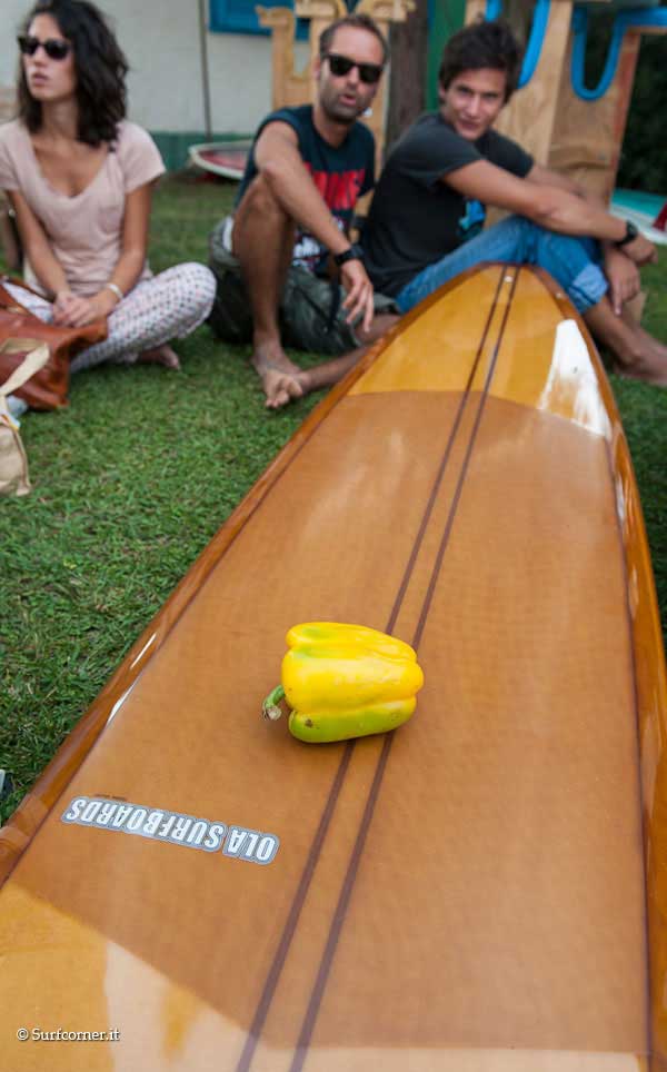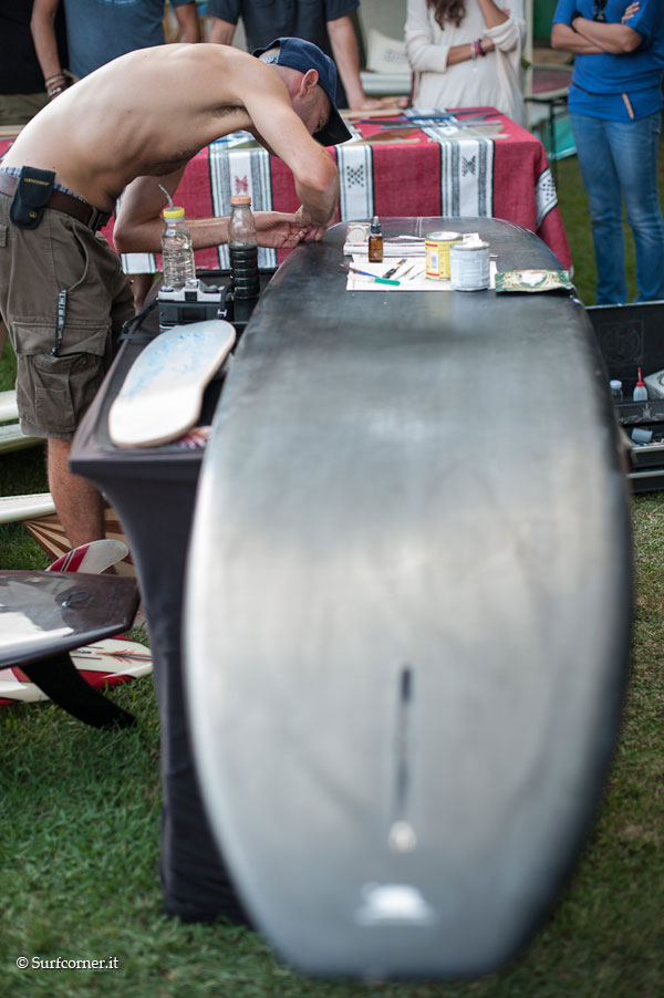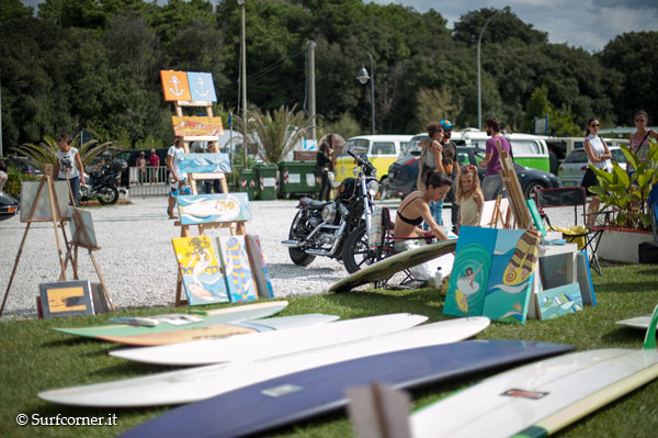 Fin dalla mattinata si è registrato un maggior afflusso di gente rispetto alle scorse edizioni, bel tempo e caldo a volontà. Molti gli shaper italiani presenti: Ola surfboards, Dr.Ank, Alaia religion, Surflab, insieme a Bing e molti ospiti dalla California, Matt Calvani, Chris del Moro, Oliver Parker, e Jason Baffa che filmava per il film “Bella Vita”. La giornata è trascorsa tra l’arte esposta e le performance live, sopratutto quelle di Riky Brotini. Barbecue accesi e birra a fiumi all day con il sottofondo di gruppi musicaliche si sono avvicendati durante il pomeriggio tra cui i Sea Sound Radio.