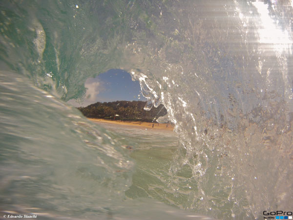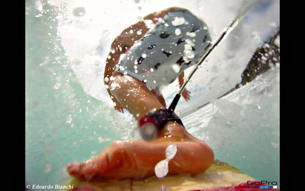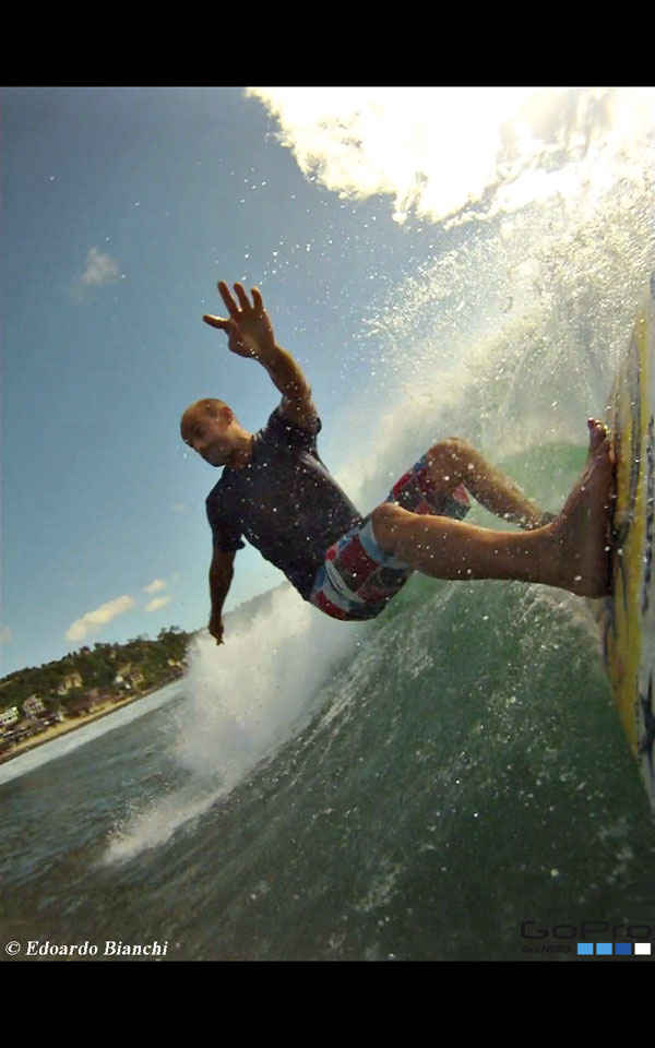 Edoardo. Come ho già detto in precedenza, potermi riprendere ogni volta che voglio senza aspettare che qualcuno lo faccia per me, mi permette di avere tutte le immagini che voglio per andare a correggere ogni mio errore. Ogni ripresa o foto realizzata con la GoPro, oltre a migliorare il mio modo di surfare, è anche un grosso stimolo, nonché un bel divertimento.