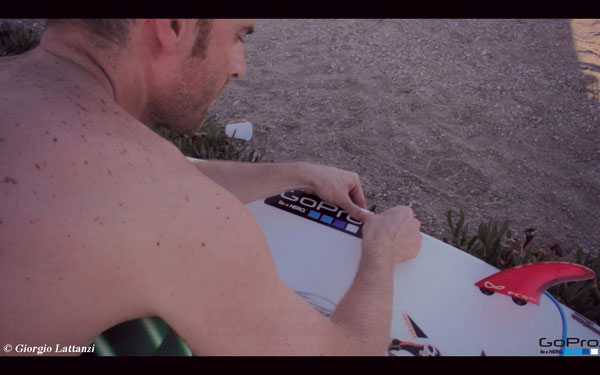 Edoardo. La mia prima GoPro me l’ha regalata Elena. Ovviamente era una GoPro Surf Edition, quindi all’interno ho trovato subito gli attacchi per poterla applicare sulla mia tavola. Dopo molti tentativi di studiare le impostazioni della GoPro, che hanno portato a una collezione di primi piani del mio volto deformato dall’effetto fisheye, sono riuscito a utilizzarla anche sulla mia tavola. La curiosità di vedermi subito come nelle inquadrature spettacolari, che spesso sono pubblicizzate sui vari siti, mi ha portato ha provarla come un cretino prima in casa, sul tappeto del salotto, piuttosto che in mare sulle onde! Dalle riprese sembravo un matto che voleva fare surf sul pavimento di casa, ma in realtà è stato un lavoro utile per capire come porre l’adesivo m3 nel punto giusto della tavola per scegliere l’inquadratura migliore. Alla prima surfata gli forzi sono stati subito ripagati con delle riprese fighissime!