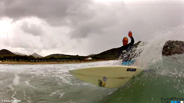 Elena. Grazie alle riprese fatte con la GoPro posso correggere e perfezionare il mio stile. Rivedere le mie riprese è un ottimo aiuto per capire gli sbagli che faccio mentre surfo e per migliorarlo surfata dopo surfata. Anche con i nostri allievi usiamo la GoPro per riprenderli e per studiare gli errori che fanno e come possono migliorare.