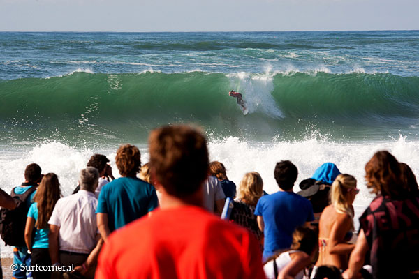 Dopo il pomeriggio di ieri, che ha regalato ancora una volta bombe disumane sulle basse secche di La Graviere, questa mattina il campo gara del Quiksilver Pro France si è risvegliato in condizioni classiche e con onde più piccole, con sole, leggero vento offshore che glassava e modellava le onde tubose che hanno reso famoso Hossegor.