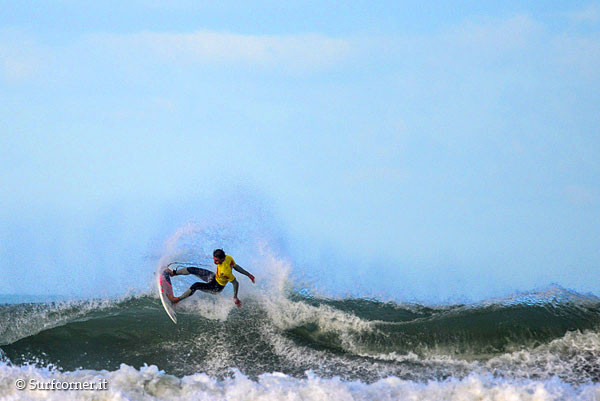 Questa volta Angelo Bonomelli non ha commesso errori all’appuntamento con le onde versiliesi, strappando la vittoria agli avversari al termine di una finale combattuta a suon di air e trick radicali.