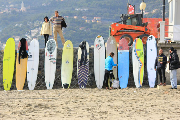 Però rimaneva un problema: la piatta persisteva sulla baia di Levanto finchè per il 19 e 20 Novembre, ultimi due giorni di gara, si fece avanti una piccola depressione che avrebbe portato onde intorno al mezzo metro nel nord della Liguria; dopo la brillante idea di Eleonora Frascella sotto consiglio e aiuto di Paolo e Renato Colombini si fece una bella riunione con l’approvazione di sponsors, ASP, Area 51 e Reset per decidere se spostare la gara a circa 200 km dalla location stabilita in quel di Andora. Dopo alcune valutazioni e sopralluoghi l’organizzazione decide di partire immediatamente per Andora per disputare finalmente la finale del campionato del mondo longboard incoronando nelle nostre acque il campione.